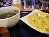 Garlic rice, delish, ramen very good, cucumber salad ok, Donburi extra good. Crowded on a Thursday eve. Super efficient and friendly wait staff. Could drink the hot broth with a straw.