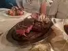 Guided by reviews we chose this place for an important family dinner. The place is really very charming and welcoming. The only flaw is the tables a bit too close together that lead to sharing space in an unsolicited way. Quick service but a little rough at least by those who accompanied us in the dinner. In 4 we ordered 2 T-Bones and a portion of French fries, 2 lager beers to accompany and then 4 desserts (NYcheesecake, chocolate cake and a chocolate mousse) All excellent quality ) especially the meat. Bill in my opinion salty (75 € per text) than overall ordered.