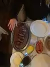 Came here for lunch with my wife and kids. We had the prime rib and the mutton. Both were excellent. They tend to err on the side of making things slightly less done than what you ask for. The diff between med rare and medium doesn’t bother us but just mentioning since I’ve read others mention it. The fries were exceptional. The meat was very good. One thing I’ll say is that we under ordered because so many reviews mentioned how large the portions are. They are suitable for 1 adult but definitely not enough to make 2 people full unless you are ordering a lot of sides and getting apps or dessert. I was expecting $80/kings cut to mean a giant ribeye for 2 but any guy could make short work of it. The restaurant isn’t advertising these as 2 servings but worth dispelling some reviews (maybe servings used to be larger?) The reason for 4 stars instead of 5 is that while food quality is excellent, the price is quite high for the amount of food you are getting. You are paying extra for atmosphere, and I think they are overcharging a bit on that — I’ll say the same about Lugers. Service was exceptional and no attitude. We had multiple servers who were on top of things. Place and facilities seemed very clean.