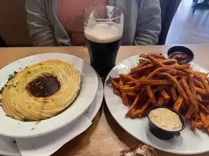 I had the Shepard’s pie so amazing and the sauce on top was really yummy!!!! So filling I would recommend for a hearty meal since it has ground beef :) and I also had the strawberry lemonade cocktail so yummy and fruity 🥳