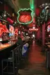 I just love the friendly feel here... sorta like Cheers. You don't have to like bikes to enjoy all the biker stuff everywhere... hanging from the ceiling, on the walls. Just plan fun and next door you can hear live music. they have great breakfasts but the happy hour and Caesar Chicken salad and Rueben's are dellicious. Very fun bar to spend any evening in....