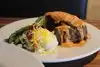 Food was absolutely delicious. I forgot what it was called but it was eggs over mediums with bacon and queso poured over top with tomato and avocado with an English muffin on bottom. It was so yummy. The potatoes were so good.. My two business partners seem to enjoy their meals as well. Every thing is farm to table. It taste like it was.. definitely can’t wait to go back..