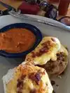Cannot remember the name! But it was basically eggs on an english muffin with queso. Uhhh- YUMMMMM. Plus we ordered a mocha java pancake to share. Delicious! Server was a bit slow and not super attentive, but he was very pleasant and we were not in a hurry. Restaurant was clean. Coffee was good!