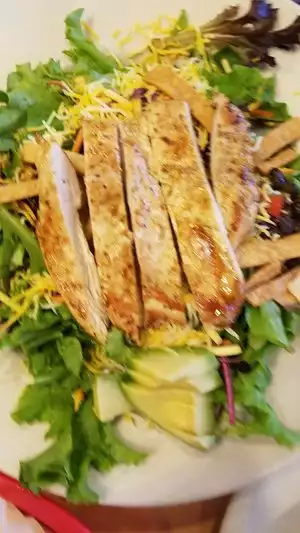 One of my top 3 favorite salads in Austin. It's nice to try new things, but it's also nice to have a standby favorite place and salad, too. With chicken added, it is well balanced for protein fats and carbs, fills me up, but doesn't leave me feeling sleepy! Probably just enough room for a bite of someone else's pancake!