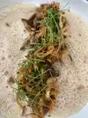 Perfect dinner, service, atmosphere. Alejandro was our waiter, and was fantastic. To our surprise, we started the meal with a popcorn basket. So much better than a bread basket! For appetizers, we split the Sugar Snap Peas and one Pork Belly Steam Bun. For entrees Hubs ordered the Sonoma Lamb Szechuan Noodles and I had the Duck Meatball - singular. One giant meatball on a bed of the creamiest grits you’ve ever had. To wrap it up we ordered for dessert a Budino, and a liquid dessert - Harbor Brew. Loved the live music. Will be back (hopefully for brunch!)