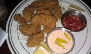 Some sites might have Khyber Pass Pub listed as a bar, but it has a full menu. We were seated quickly then ordered dinner and drinks. We shared the Cajun fries with our oyster po-boy and shrimp Caesar salad. Friendly staff, fun atmosphere.