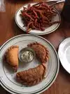 The reviews promised lots… the menu on Trip Advisor promised exactly what we were looking for… good Southern food. Boy were we disappointed. There was little beyond sandwiches on the menu… burgers and po boys. No shrimps, no steaks, no chicken (except in the sandwiches) We had 2 burgers (one Kyber and one chicken ) fries and onion rings due to the limited options… both were greasy, overcooked and just poor….awful experience. Don’t go if you’re looking for decent Southern food. I’ve rarely - if ever - had worse pub grub on a review of 4 plus. Only saving grace was the staff were friendly and efficient… they don’t cook the food after all!!. So disappointed.