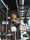 I remember walking by this place a few times. The logo stuck in my mind. It looked like a very disgruntled burger with manic tendencies. So I figured it must be some over the top burger joint. Boy was i surprised when I walked inside yesterday. It was more like a bar that has a spcial range of burgers. And nothing at all like a simple run of the mill fast food burger joint. It was a cool looking place where you can have a drink and have a burger as well. I ordered the Classic Burger and I think it was a Bloodshed Red Beer. this came to $15.45 and was well worth the price. Glad I finally strolled into this place to check it out. I like the art on the wall as well. Johnny Cash looks pretty intense in that pose.