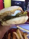 One of THE BEST burgers my husband and I have had with great double fried fries!!! Be prepared for an alternative punk rock atmosphere. Thereâs rock/screamo music playing and was literally bbq sauce drips on the walls. The only food critique was my husbandâs chicken burger tasted fishy probably because the fryer oil needed to be changed. If the atmosphere sounds like a turn off, get it to go! Definitely donât pass up eating here!