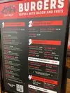 The staff made many recommendations and we decided to try the Classic, Jose Mendoza, and Teemah. The classic was good! The Jose Mendoza was amazing...chiles perfect! The Teemah was too much...and I love blue cheese...but take the strongest blue cheese and then add that and blue cheese dressing...it's alot of blue cheese. I don't recommend this one. Overall we liked it and would return. Staff was friendly, came around and offered french fries and also gave us free drink cups. Bacon on every burger is a plus!