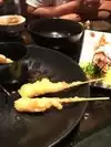 We live in Manhattan so our standards are pretty high, but we also understand resort dining as we had a fabulous meal at Il Mulino previously in the Swan Hotel. We decided on Kimonos because we needed an Asian cuisine fix. Apparently Kimono's was rated top 10 sushi in Orlando - there must only be 10 restaurants and they are #10. Every sushi dish had some sort of mayo based sauce. Their green salad did not even get the miso ginger dressing and not enough of it. Someone has to tell that that vegetarian doesn't mean boring and bland. Their vegetable roll were tasteless and bland. Their gyoza's including six dumplings for a whopping $10.25!!!! robbery! Their udon soup was the best dish, but needed to be twice the size. Lastly, their shrimp tempura looked like a fast food kids meal.Their vegetarian tempura was all green beans with only two small pumpkin pieces and their shrimp had SKEWERS in it - what? (see photo) ! I've never seen skewers in shrimp tempura - what happened to light fluffy tempura with their gorgeous tales sticking out. My kids ate their chicken katsu (3 pieces) also on a skewer which was $12 and included nothing else. The prices here were outrageous and confusing.