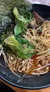 We started with grilled bok choy which was over salted. When the grilled veggies are too salty, you know you are in for it at a ramen place! We had miso ramen with chicken and Yaki soba (not real soba noodles) with brisket. The Yaki soba was my favorite. Service was good and water had charcoal in it! Will def be back here.