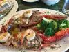 Nice service and friendly. Ordered lobster and stuffed lobster. They Thad no flavor and were tasteless. Only had the consistency of lobster. Stuffing was terrible and tasteless and full of oil. Crab cakes were like mush. All filler. Go elsewhere