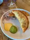 If you find yourself along the waterfront for any reason and need to eat, check out King Tide. Great vibe, food, and staff. Such a hidden gem with lovely scenic views of the Willamette River. Thank you, Kyle, Sarah, and staff for a wonderful evening. Our table was ready when we arrived. We were welcomed with smiles and enthusiasm. Sarah was very attentive to our questions and needs, even finding a bottle of wine I requested that wasn’t on the wine list. While they are not set up for group dining in King Tide they accommodated our group of 9 very well. Call in advance to see if they can meet a group dining request. Everyone in my group enjoyed the meal. Killer Japanese Curry Empanada in a puff pastry, brisket, curry, cilantro, and house-made sauces. Thank you, Kyle & Sarah, you made our night and really put the cherry on top!!
