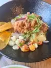 Wesley our server was friendly and extremely accommodating. He was able to modify a dish to my wife's liking. Wesley also brought a extra bottle of water to our table because the 🍸 cocktail she had was spicy hot. As for menu and food, we thought there would be more seafood choices. The ceviche was very good and when asked Wesley brought more plantain chips. My brined pork chop 🥩 was moist and tasty. My wife enjoyed her seafood risotto, but thought it was average tasting. The chocolate mochi cake was good, but we liked the toasted marshmallow ice cream 🍨 better.
