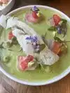 The chef did an excellent job of preparing the meal! I had the Salmon with riced cauliflower and almonds. Also deviled egg with crab and salmon. And half dozen raw Tide Point Oysters from Washington state. The drink was a special for the night; Gin w/peppermint, lime, honey, & lavender bitters. It was delicious.