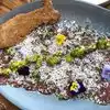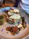 Appetizers Deviled eggs with crab & roe and Elk carpaccio were good. The entrees rockfish was a bit over cooked as was the salmon. In general, food is good but nothing spectacular. The inside seating is noisy and not that interesting; sit outside if it’s available.