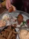 Hands down this is one of the best dining experiences I've had in a long time. I can't believe I've never been to King Tide! We originally went down to eat at TD's Pop up taco bar in front of the RiverPlace Hotel but it was not open. The staff was incredible, so friendly and knowledgeable. We ordered oysters, the house pickled deviled eggs (which were amazing) and the beet salad to start. We decided to splurge and get the Whole Fish "A La Plancha" for two. the catch of the day happened to be striped sea bass - my favorite. It was cooked to perfection and served with roasted mushrooms, truffle potato puree with a French Chasseur sauce (that takes 6 hours to make). I thought I had died and gone to food heaven. Seriously one of the best meals I've ever had. However, it did all come at a price...but worth every penny! The people sitting next to us were also impressed, they tried to order it but it had sold out. The cocktails were delish too!