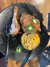 Nice place to enjoy good food. Our server, Nefertiti was great. As this was my first time here she went over the menu, told us about the favorites on the menu, and was an all around great person. I had the catfish and grits with the fried lobster tail. I received 2 large pieces of catfish, which was very good and just a bit salty. The fried lobster tail was tasty. I had the key lime pie for dessert which was very good. My friend had the peach cobbler which was good, the downside was that they didn’t serve ice cream with it.