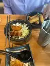 My first ever experience of Japanese. Visited on a lunch time with 7 other work associates, it was super busy so we agreed to split up, 4 and 4. No worries. I ordered the Spicy Ramen, a noodle broth with pork, chili and spices. My soup also had a soft-boiled egg with a cold, uncooked yoke - super weird but fun! The dish burst with flavor, was fresh and high quality. The server was very knowledgable about the food, polite and prompt. All around a good experience, though the price tag of $14 for what is, essentially a bowl of broth, noodles and a little pork, just seemed high, especially for a lunch.