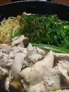 Wonderful small plates, octopus dumplings and addictive vegetable tempura. The soup was an even compromise between noodles, broth and vegetables and meat. The pork was roasted with a smokey crust. Gently braised greens. Extras included soft boiled eggs, pork belly and a marvelous fish cake. Good green tea. In a shopping center so good parking, minimal Asian style decor and lovely helpful service.