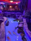 Pretty simple set-up, staff was very friendly, Koi ponds are absolutely unacceptable for animal health!!!!!, no introduction on how cooking flow works hence far too much food in a short amount of time, salmon was frozen instead of fresh, sushi was very nice.