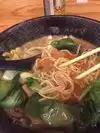 This is a cool spot. The menu and ambiance, from outside, caught my eye. Upon entry, I was greeted (very important) and, since I was solo, took a seat at the bar type area which overlooks the cooking area. The only thing I didn't like about that area, and it may be due to my height, is that you really can't fully see the people in the cooking area because your view, once seated, is covered/blocked by design. But, If you're a super short person or a smurf, then you can see the full action in the cooking area, which I think is part of the eating/dining experience. Regardless, the decor, in that area was very nice: simplistic, natural, earthy and colorful. The overall ambiance was cool. Music choice was great: it was a blend of chill hip hop/jazzy type instrumentals. I ordered the Coconut Curry Vegan ramen noodles dish ($16) - - with extra bok choy ($1) and spinach ($1) which tasted great. I also had a bottle of Sapporo beer, reserve edition ($4). Total with tax: $18.22 I could see myself ordering off the lunch or happy hour menu where you can find deals and save a few bucks too. Especially, if you're a carnivore. What I liked, as well, was that after finishing my meal, a few people in the cooking area, upon seeing me get up to leave, thanked me for coming. I consider that important. That shows their appreciation for my business. Would I go back? Yes, I def. would. It's a good place to grab some food with friends. There's an open area in the back with tables to accommodate more people. It def. seems like a popular spot. I would want to try their other dishes as well. Peace.