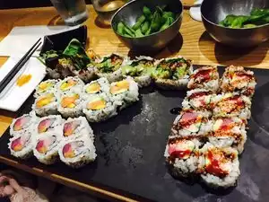 Brought my daughter here on a Wednesday night and was surprised to find the place packed for dinner! A very lively atmosphere but I'll admit, I was worried when I didn't recognize much on the menu. We settled on some rolls that were delicious and satisfying. I'm not a sushi regular and was worried that I would need to find a burger to eat after the meal....but the food was quite filing and so healthy!!