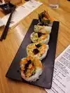 Delicious sushi and small plates in this little restaurant. Noisy inside the small place. Super-friendly staff. Everything we had was good. Reasonable prices.