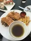 Shopped into the evening meal hours and stopped in for a second visit. This time I had the chili and cornbread and the french dip sandwich. Chili was very good and the roast beef was good also however, I would have preferred less fat in the dipping sauce. We had our usual Pot stickers for appetizers and she had her sushi roll. We like this place because the menu supports different culture and tastes. Atmosphere is nice also and go outside if you want a quiet conversation. Thanks for reading.