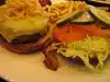 Seasonal burger with jalapeños and a volcano sushi roll. The burger was juicy and smoky and tasted amazing, sushi was fresh and excellent.