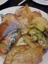 our party of four tried a variety of dishes from bbq ribs, salmon salad, sushi, jambalaya ... food was all okay as was service ... however, the ambiance was noisy and not conducive for the casual get together and talking among friends we had planned ... with many options available we would go somewhere else next time