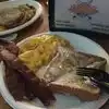 Amazing breakfast served all day! Two huge pancakes, bacon, scrambled eggs with cheese, an English miffin, and the most wonderful potatoes with cheese, onions, bell pepper, etc! All for a great price. And the best part, no wait like there usually is at Kono’s on the board walk just a mile away.