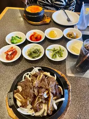 My wife and I like Korean Food and even fix some dishes at home. We had a business meeting here that served the gut splitting 15 course traditional Korean Dinner. The dinner comes with choices for different main dishes. We had the Galbi Jungsik which is Beef Short Ribs. Each course is so good that you have to not eat too much and save room for the absolutely delicious main course at the end. The courses included glass noodles, fried shrimp, friend assorted vegetables, kimchi, a couple different kinds of rice with different ingredients mixed in and at least a half dozen items we are not sure of. There were no unpleasant taste surprises, everything was very tasty and the ribs were the crowning glory. If you have never had Korean food this is the way to go. If you like Korean food you will most likely find a few new tastes to add to your selection choices.