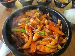 This small restaurant is a short walk from downtown. My husband had a bulgogi combination lunch with seafood tofu soup. The tofu in the soup was delicious. I had the spicy squid stone pot - let it sit to get the crunch rice - really good. We also ordered the black bean noodles - make sure to sure this thoroughly. Another yummy dish. Really good choices and good food.