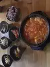 Stopped in for supper and ordered the soft tofu soup with pork dumplings. I’ve never had this dish before, therefore have nothing to compare it to. However, I do know when I enjoy something. The soup came out bubbling hot and my server asked if I wanted an egg cracked over it (which I did). About half a dozen sides accompanied my soup - fermented items, potatoes, rice, scallion pancakes and a delicious kimchi. The soup was spicy but not too crazy. The flavors were rich and the ingredients fresh. This is a small place (about 10-12 tables) with a very welcoming and friendly atmosphere. Prices are very reasonable.