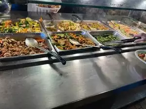 Lunch buffet had a large selection of delicious Asian buffet dishes. The buffet serving area was clean and dishes were checked and refreshed often. The tables were clean and the service was excellent. Dishes were promptly removed from the table and drinks were also quickly refilled. Very reasonably priced.