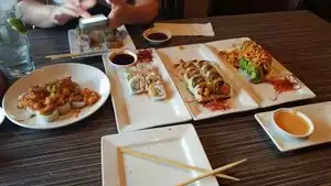 There were so many options of sushi. Most have the sauces on the side so you can choose what type you like. There is a happy hour special for some of the options that make it a great price. Two people choose the noodle bowls. The was not a lot of beef in their bowl. The Mayo sauce was spicy and I wanted a sweet Mayo sauce. The teriyaki sauce was sweet. Waitress have good suggestions. There was almost to much to choose from.