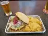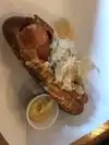 Enjoyed the outdoor seating. They have oscillating fans with misters which kept us cool. My husband had the lobster roll (available on Tuesday’s) and he said it was amazing. I had the chicken salad sandwich and I was pretty disappointed in it. It was bland and there was more lettuce than actual chicken salad on it. My kids had the fried bologna sandwich which was good!
