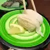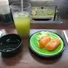 The perfect combo. The green tea is the powdered kind and not the teabag. The selection is nice and they also have Udon, tempura and an assortment of desserts. I recommend that you go with a friend or two and sample more plates.