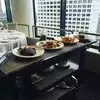 Had a group lunch here. Food was good; service okay. We were never asked what we wanted to drink. Table mate’s bread plate was removed before she finished eating. Started with a salad which was several leaves of romaine, one slice of tomato, a crouton and a bit of Parmesan . Pretty unimaginative. Entree was salmon served with asparagus. Both were very tasty and well cooked. Dessert was some sort of mousse which was pretty gross. Views from the 35th floor are killer.