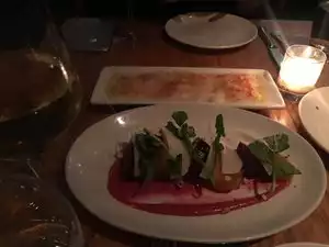 The restaurant offers limited choice for vegetarians but for non-vegetarians there is a good choice of dishes. We had booked our table in advance. The place was very lively even for early sitting. The bread was great whilst we were going through the menu. We ordered beets-pistachio butter, scallop crudo, spaghetti with garlic, Ricotta morels peas parcels and tagliatelle bolo. Salted chocolate cake for desert was great way to finish off. Everything was very well presented, tasted great and received service with smile from Hollis. I will recommend this restaurant to my family and friends.