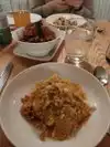 The appetizers were fantastic. The pasta tastes more like a ramen (probably not using the right flour or a mixture ) hence their al dante pasta ends up being undercooked instead of tasting actually al Dante. This is a huge red flag for an Italian restaurant. The pasta bolognese tasted more like ramen bolognese. The bite is initially very plastic and then just suddenly cuts through the pasta indicating the potential use of gelatin or some form of an ingredient that pushes the pasta over the edge to a ramen. Second big red flag is the overall feeling of entitlement across the workers. They don’t sound The experience felt like a bit off for a place that is supposed to be really highly regarded. Any small Italian restaurant in Italian town would be both better and better spent money. Avoid it!!!
