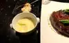Many of the seats are at the bar, on a higher wooden stool. For those who want to see how the food is prepared and assembled on the plate, this is a great thing. However, the space was very cramped. I had to stow my glasses and tiny clutch purse behind my water glass. My neighbor was two inches away. The menu is mostly seafood. I had a choice of $58 spaghetti (no salads or fresh veggies anyplace on the menu) or a $90 steak. After I cut out the big hunks of fat, the steak was excellent. My boyfriend would rank this place 5+ stars, and I would give it a 3, so I arrived at a grade of 4 stars. Great service. Beautiful presentation.