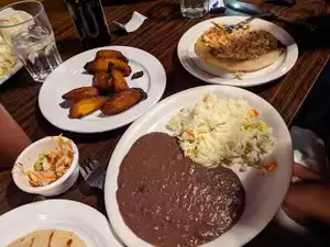 I had driven past this new restaurant several times, finally looked it up on the web, and after seeing the great reviews decided to visit tonight with a friend. We were not disappointed. The place is somewhat small, but it was mostly filled by the time we left. Most of the eaters were speaking Spanish. We each had a pupusa (from El Salvador). I had one stuffed with spinach and cheese and my friend had one stuffed with chicken. It wasn't listed on the menu but she cannot each much dairy so requested one without dairy or pork as neither of us eat pork.. A pupusa is a savory corn masa stuffed with a filling. Both were delicious. They were not heavy in cheese and somewhat delicate. Both arrived hot and were delicious. The came with two bottles of sauce, one was spicy and the other not spicy--in fact it was very mild and perfect for us. The pupusa came with a tiny cabbage salad which was spicy, too much so for us, but we both do not deal with spicy well. We were going to order a pupusa and one tamale but the waitress told us that there probably was some pork oil in the tamale, so we thanked her and got 2 pupusas. The pupusas were $2.50 each. We shared Salpicon from Honduras as our main dish, which cost $13.50. It was minced beef blended with diced onions, cilantro and lime juice and was delicious. It came with rice and a salad with a light dressing. The rice had a few vegetables in it and was nicely seasoned. I was delighted at how light the meat was as I rarely eat beef. We mixed the rice and meat together and really enjoyed the meal. We both splurged on a specialty house drink for $2.50 each and one free refill. I got Maracuya (passion fruit) and my friend got Tamarindo--a refreshing sweet/tart tamarind fruit drink. It actually was less sweet than the passion fruit drink. We finished our meal by sharing a fried plantain with panela and cinnamon topping with a bit of sweetened condensed milk but not overly sweet. Our total bill came to $30. The owner and waitress were delightful and spoke English very well. I also spoke to them in Spanish and said that I was going to Guatemala soon and they wanted to know where. I definitely look forward to going back.