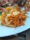 Nice setting. Cute patio. It was brunch time and had to ask for the brunch menu. Our table was wobbly beyond okay, and a waiter tried but didn’t succeed to fix it. So I had to get under the table and fix it myself. I ordered a chicken taco. It was literally 1/3 a chicken breast in a flour tortilla. That’s it. Beef brisket taco was good. Mexican cole slaw side dish was cabbage. No really. Just finely shredded cabbage. So, maybe it was just a bad day but everything seemed off. The nachos, pictured, were good. But, nachos really can’t be messed up.