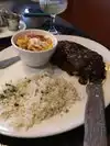 I visited La Comida on a Saturday evening around 8:30 with a cousin. La Comida is in a shopping area with many restaurants and shops, and the parking was almost completely full in the area. Once we got into the restaurant, we were quickly seated at one of the last few available tables, and a waitress quickly came for our drink order – beer for me and a cocktail for my cousin. A man brought chips and salsa, and I was glad we each got a dish of salsa. The salsa was tangy and the consistency just right for my taste – not too chunky and not too watery. I ended up getting a second dish of salsa as we waited and without us having to ask, another man brought a second basket of chips. I ordered the broiled shrimp in garlic butter sauce, surrounding a cone of rice and accompanied by vegetables. I got a side of charro beans, too. My cousin got a combination plate, and the food soon came out. The shrimp in my dish were red (see picture), which I didn’t expect, but they were delicious. Cauliflower, carrots, broccoli, and zucchini were also in the dish, and the charro beans I got on the side were also very good (they include pieces of bacon that add flavor). My cousin’s combination plate (see picture) also looked good and she said it was also delicious. As we talked we noticed the restaurant has a flamingo theme – there are two life-size flamingo statues just inside the entrance, some flamingo string lights along an interior divider (see picture), and pictures on the wall, too – the atmosphere was casual and welcoming. I’d love to visit again on my next trip to Dallas to try other items on La Comida’s menu!