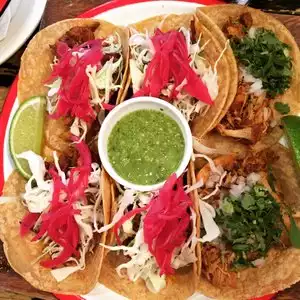 Went for a mid week dinner and found this place, busy but got a table for 2 after 20 mins. There’s a trendier bar section and a seated restaurant where we were. Nothing fancy but a step up from a basic taco place. Really good chips and guacamole and then a run through various soft tacos- chicken, fish special, pork and (best) lamb. Friendly service and ok prices. Thumbs up from me!