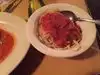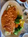 Had the seafood cannolis and it was just wonderful. Vegetable were good and spaghetti with red sauce good. Husband had lasagna had a kick and really enjoyed. Daughter had a chicken dish with a kicking sauce and spaghetti with butter sauce. Bread with oil and herbs started meal out right. Waiter was great