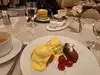 Looking at past reviews, it looks like this breakfast/brunch/lunch spot can get pretty busy, so I reserved for their 7 am opening. They, like many restaurants, don't do online reservations for solo diners, so I just reserved for 2 and it wasn't an issue. There weren't a lot of early bird diners the morning I went. La Fontaine is a very beautiful restaurant on the 2nd level of the Fontainebleu, very elegant despite having no windows. The menu is French-ish. They even have a $75 3-course tasting menu that is available at all hours--it looked very enticing and had some breakfast-y items on it, but it's a lot of food at 7 am. I ended up ordering 2 dishes (sweet and savory) and packed up the leftovers. I first got the L'Envie de Rose fruit-forward smoothie, which was delish. I knew I wanted to try the souffle pancakes, which I'd seen on social media, and I also got the La Parisienne omelette (ham and Emmental cheese). The pancakes were very tasty, 3 to an order, served with fresh berries, lemon curd, thyme whipped cream and syrup. The pancakes themselves may have had lemon zest, but the lemon curd was fab. The omelette also was fine, served with a parmesan sauce, some roasted cherry tomatoes and a hash brown cake. Omelettes do not come with toast. Service was quite good, which I expected since it was not busy. Overall a tasty and elegant meal, although a bit pricey.